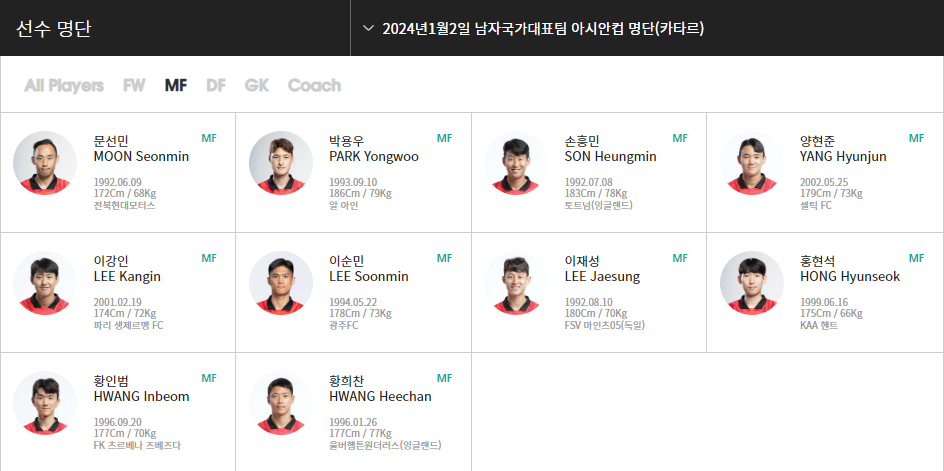 2023 AFC 카타르 아시안컵 대회에서 대한민국은 역대 최강의 멤버로 64년만에 우승을 노리고 있습니다.