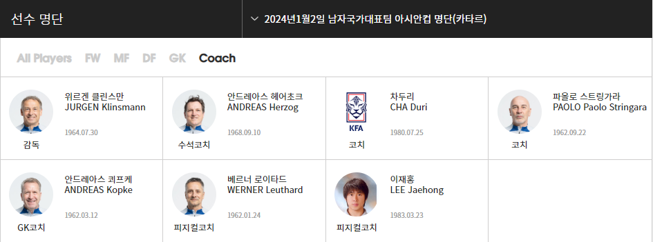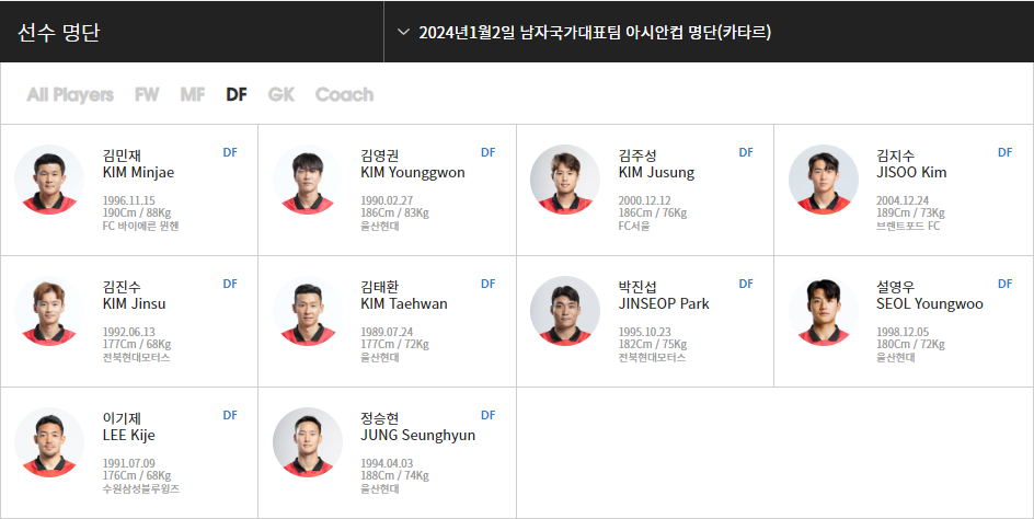 대표팀 명단