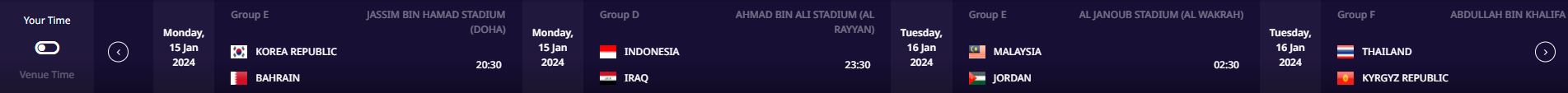 | 2024년 1월 14일(월) 20:30 | 대한민국 vs 바레인 |