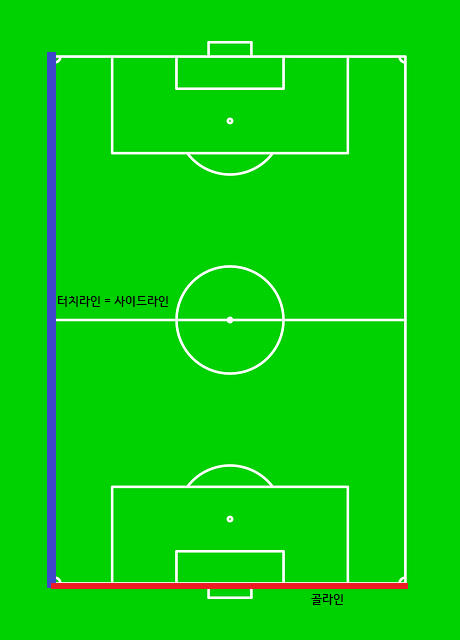 | 골키퍼 (GK, Goalkeeper) | 골문을 지키는 선수로 패널티 에어리어 내에서 유일하게 손을 사용할 수 있는 선수로 상대팀의 득점을 직접적으로 막는 역할입니다. 골키퍼는 심판이나 다른 선수들과 구별을 위해 다른 유니폼을 착용합니다. |