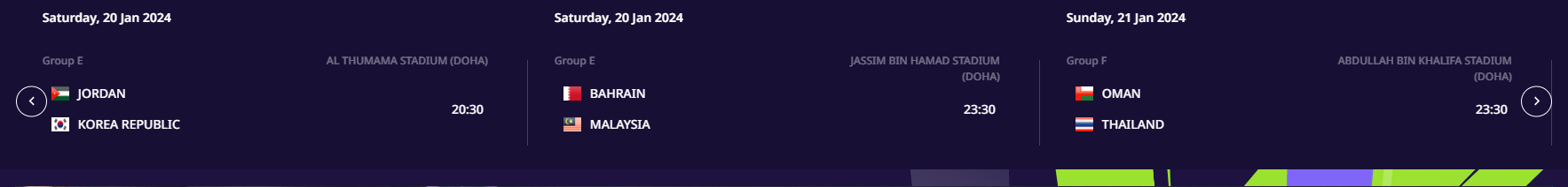 | 2024년 1월 20일(토) 20:30 | 요르단 vs 대한민국 | |