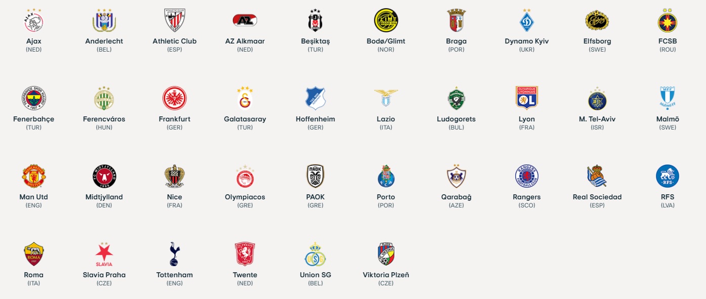 유로파리그 참가팀은 각국 리그 및 컵대회 성적에 따라 결정되며, UEFA 리그 랭킹에 따라 출전권이 배분됩니다.